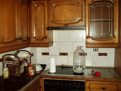 Изложение-север/юг. Разпределение: две спални, кухня, дневна, хол, коридор, баня, WC и две тераси. Състояние: под-м. паркет/теракота, стени- латекс и фаянс, тавани-латекс. Преходност от кухнята към дневната и от хола към едната спалня.