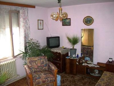 Разпределение: две спални, дневна с бокс, баня-WC/общи с мокро помещение/ коридор и тераса. Терасата е интегрирана на юг. Изложение изток/юг. Състояние: за всички стаи: под-теракота/замазка, стени-тапети, тавани-латекс. Двор в ид.ч. 350/550 м2.