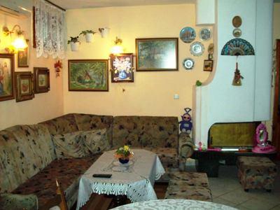 -Етаж 2: две спални, кухня, баня, WC. Състояние за стаите: под-теракота, стени и тавани-латекс.