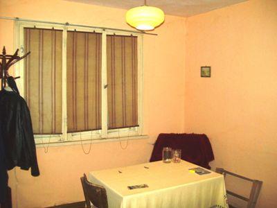 Етаж І - Разпределение: четири стаи, баня-WC/общи/. Изложение изток/юг/запад. Състояние за стаите: под-дюшеме, стени-тапети/латекс, таван-латекс.